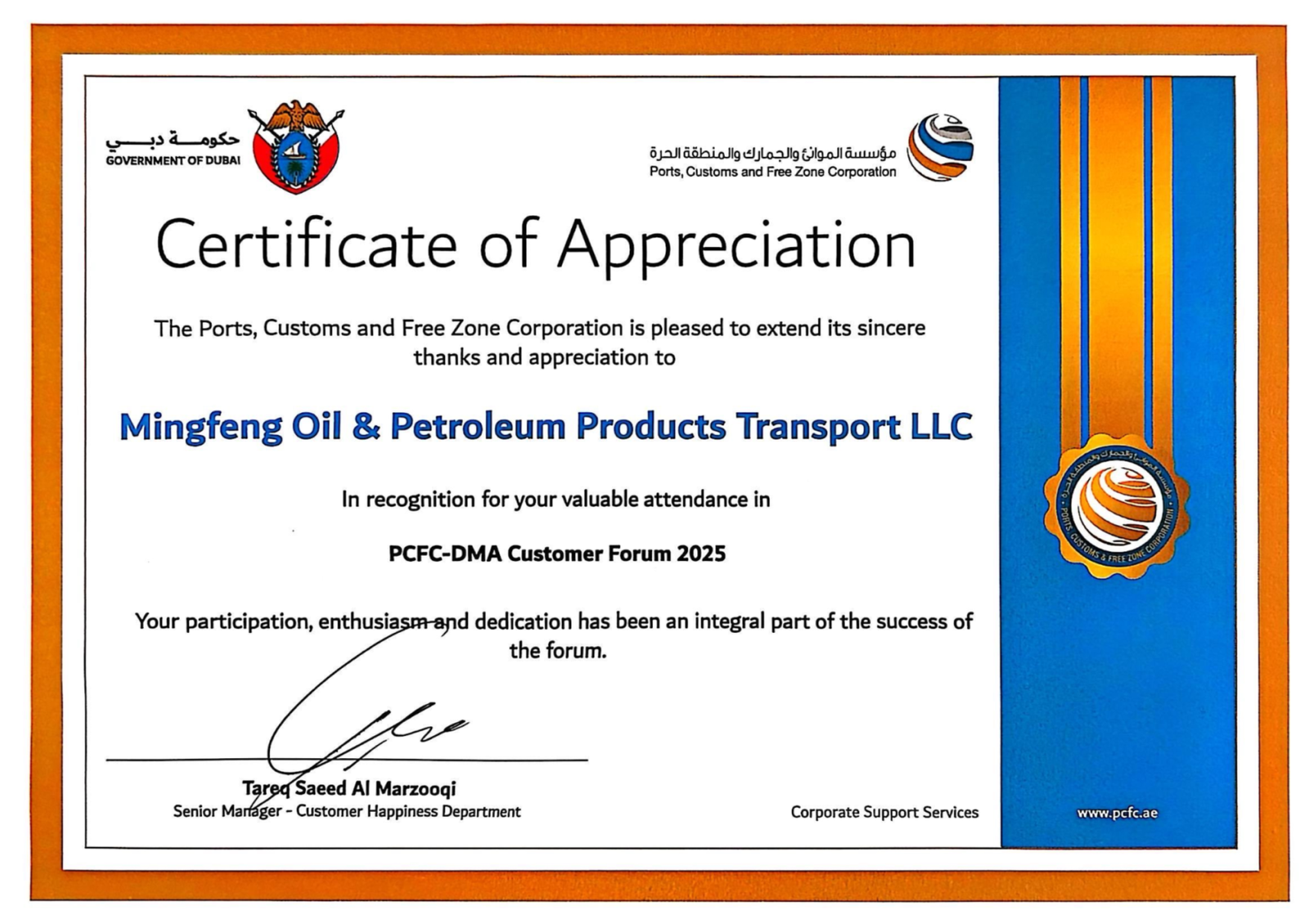 MINGFENG L.L.C., founded in 2024 and headquartered in Dubai, United Arab Emirates, is a leading company specializing in oil trading, vessel management, and maritime services. Our company is committed to delivering top-tier energy solutions while upholding the highest standards in safety, efficiency, and environmental responsibility. Through strategic collaborations and innovation, MINGFENG aims to stand out and redefine its sector within the Middle Eastern market.